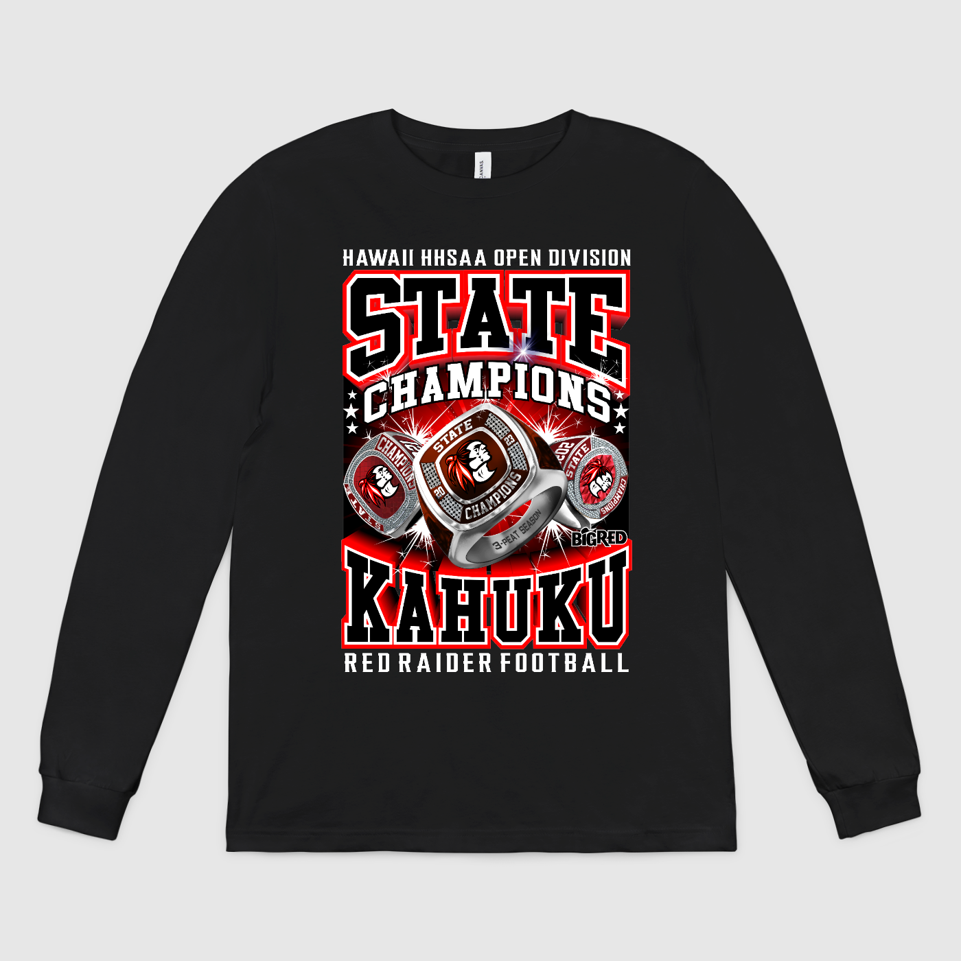 Limited Edition: 3-Peat Black State Champions T-Shirts Featuring the 3 Rings (2021, 2022, 2023) Front and Back